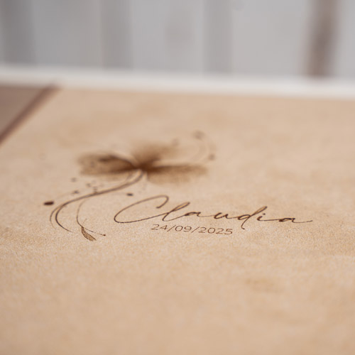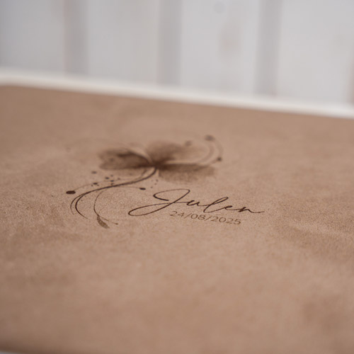 Un Álbum 25x25 con tus 12 fotos favoritas impresas en papel de algodón. Diseñado para conservar con delicadeza cada detalle de este momento irrepetible. Fabricado con telas EcoFriendly.